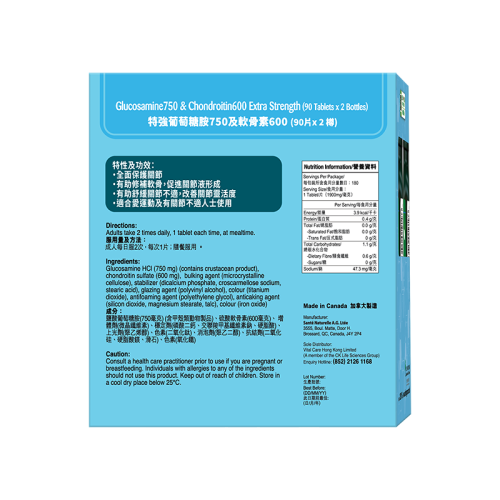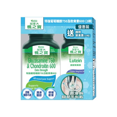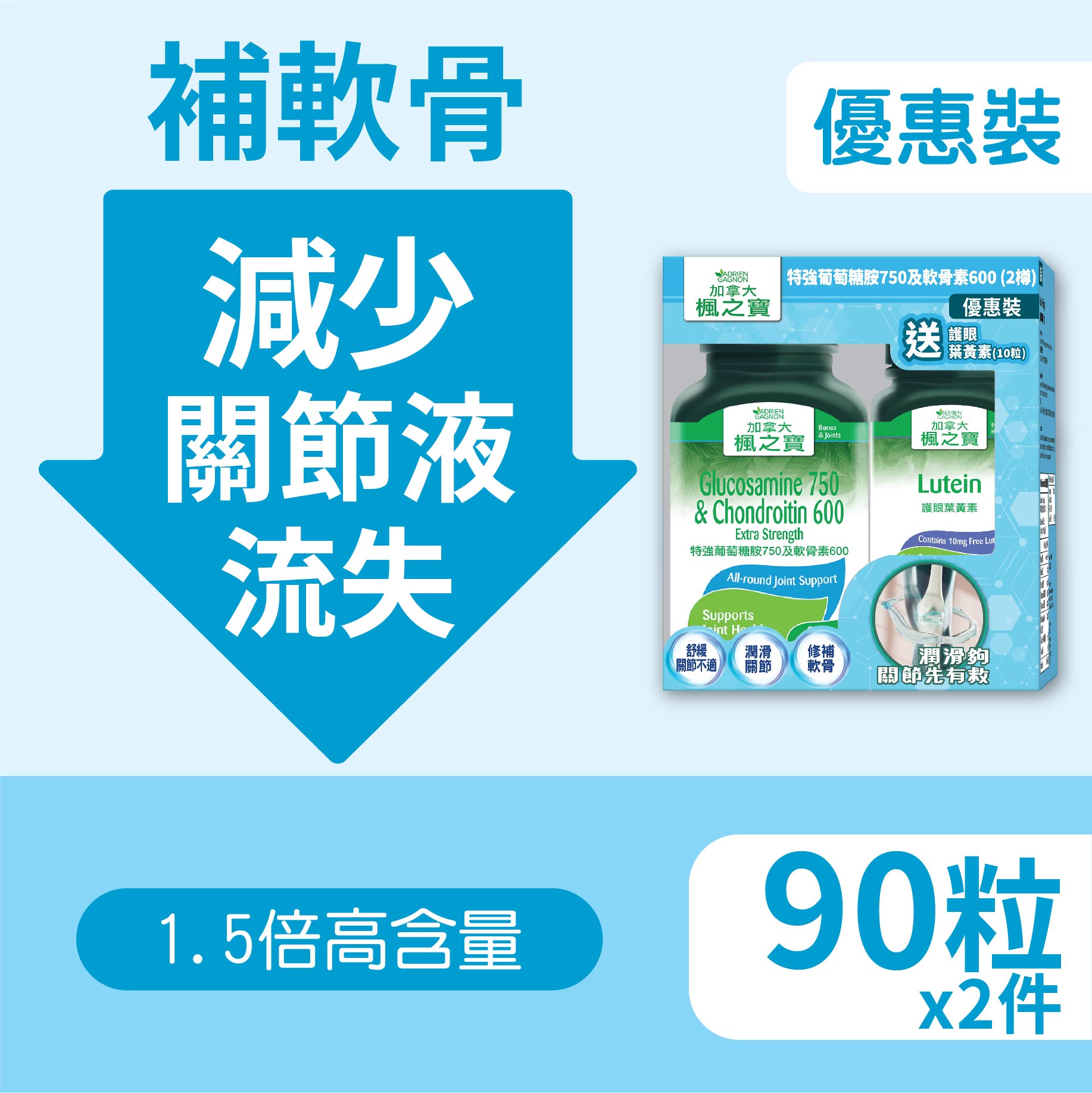 特強葡萄糖胺750及軟骨素600 (90片*2) + 護眼葉黃素 (10 粒 )Bonus Pack