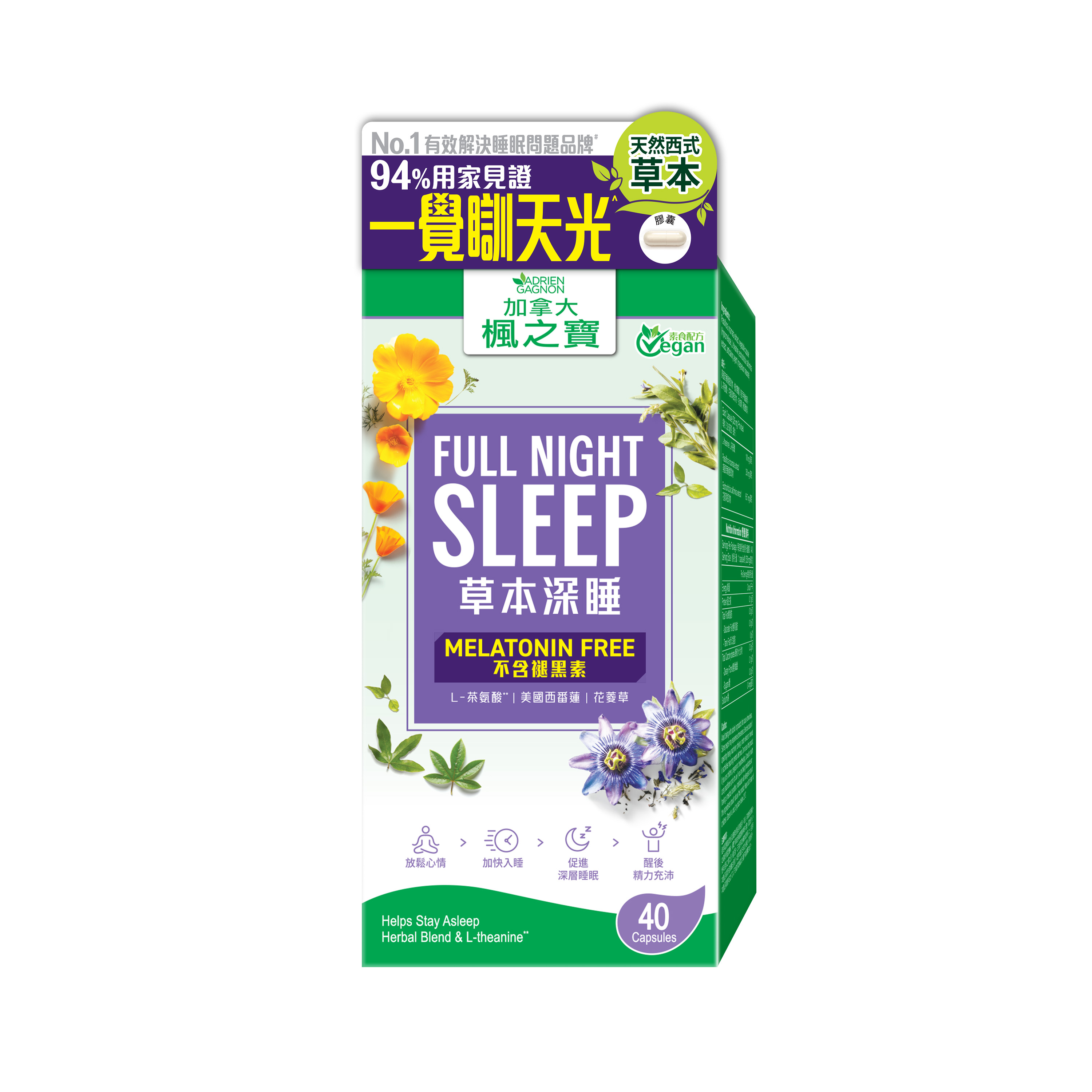 加拿大楓之寶全新推出 「草本深睡.不含褪黑素」專為都市人的睡眠問題而設的天然助眠補充品,天然西式草本成分在西方廣泛用於促進睡眠和紓壓,並已獲臨床證實能有效提升睡眠質素。草本深睡配方含天然西式草本成分(L-茶氨酸、美國西番蓮和花菱草), 能提升體內助眠及紓壓因子GABA, 從根源紓壓解憂,改善睡眠質素
